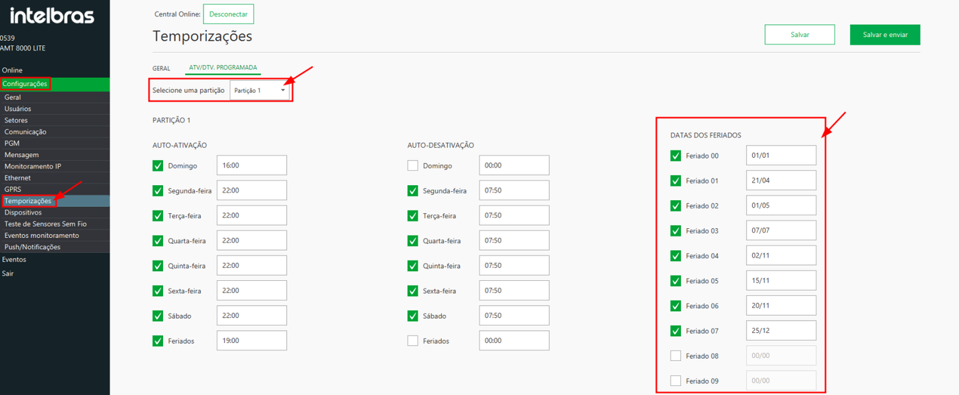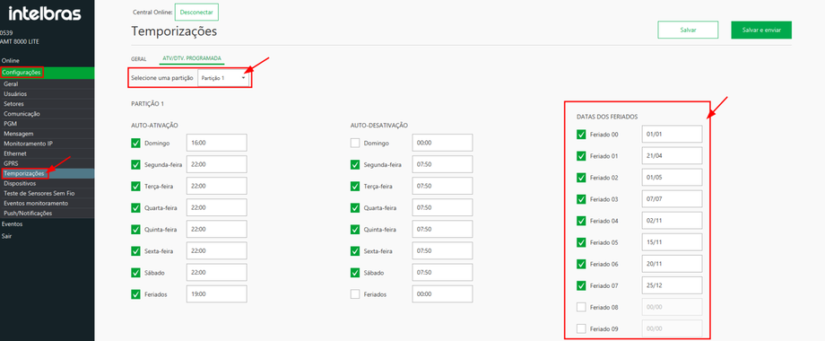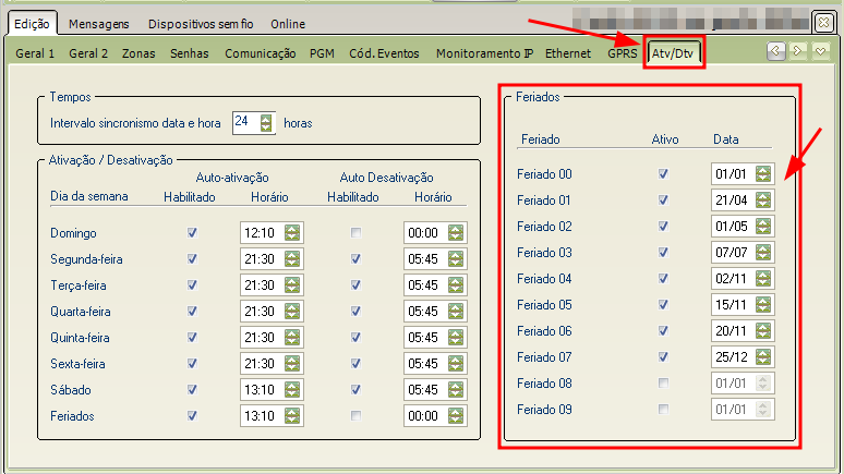 Feriados na central de alarme